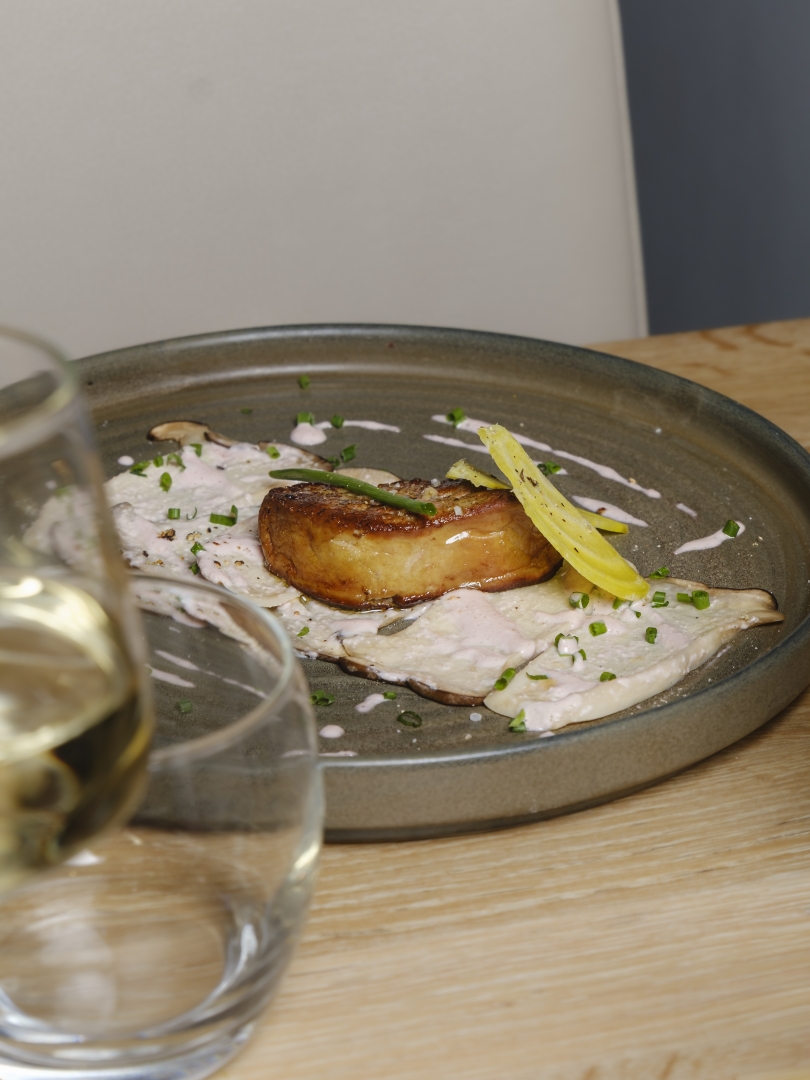 Suggestion de la semaine 27€ : Suprême de chapon, purée de vitelottes, légumes de saison & crème de foie gras.