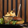 Vendredi : Burger de poulet pané, mayonnaise au citron, tomates, frites & salade.